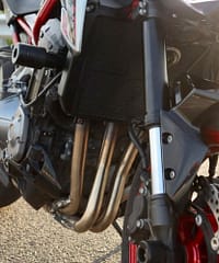 RetroCross radiator guards are designed to protect the front and sides of the radiator from flying stones, debris, and pebbles, while enhancing the stock looks with their elegant laser-cut design, which optimizes airflow while providing decent protection. A striking clean surface finish is achieved by textured powder coating, and they are corrosion-proof.